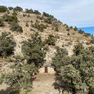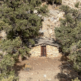 SUMMARY: No information is available on this site that we can find. A name is inscribed on the headboard of the front door. The cabin may be associated with Scotty's Castle. It requires a considerable hike to reach.