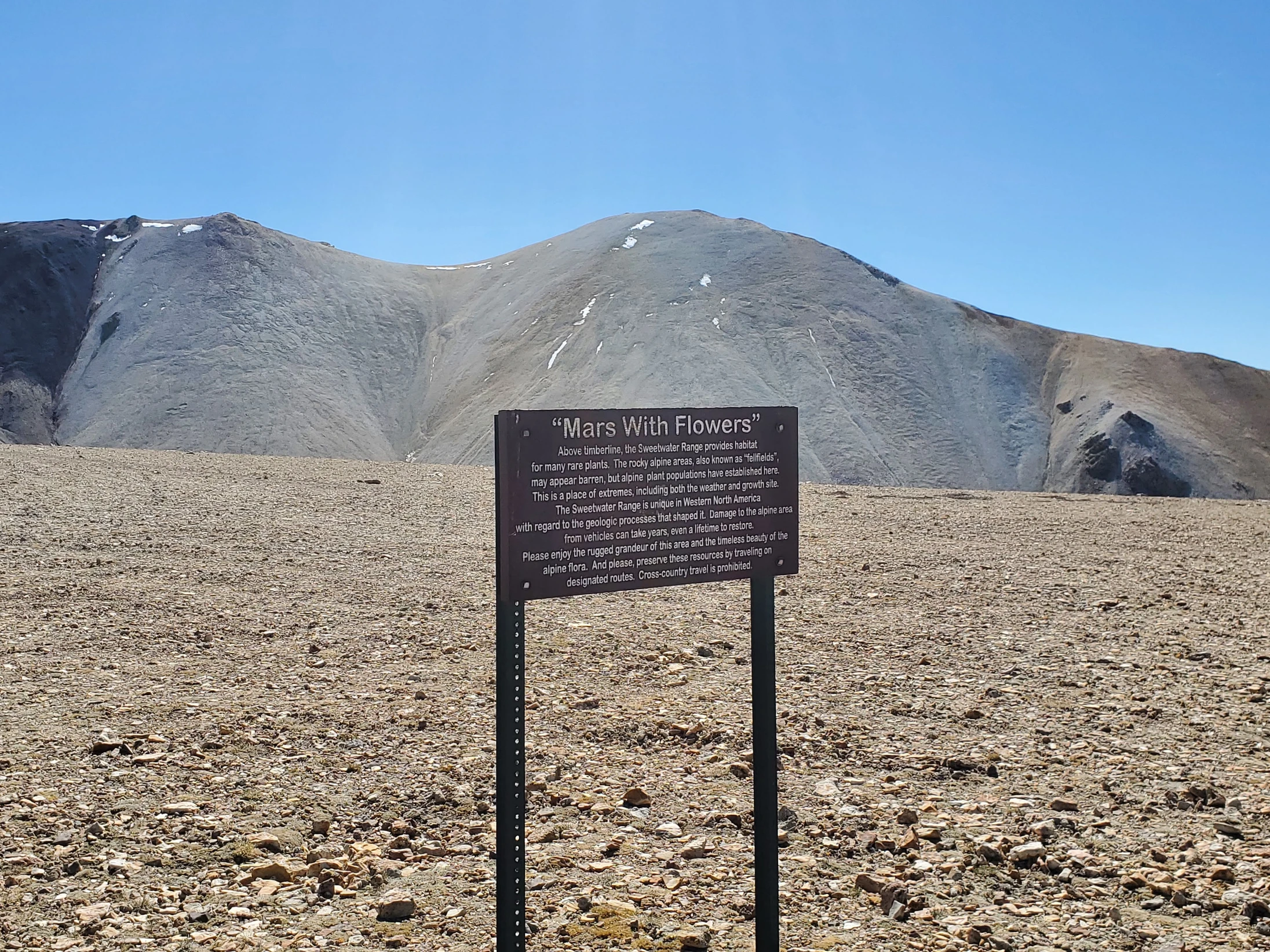 The nickname “Mars with Flowers” for Mount Patterson (and the high-elevation terrain of the Sweetwater Mountains) comes from the striking contrast between its stark, rocky alpine landscape and the surprising patches of wildflowers that bloom there. It is a one of kind place to visit.